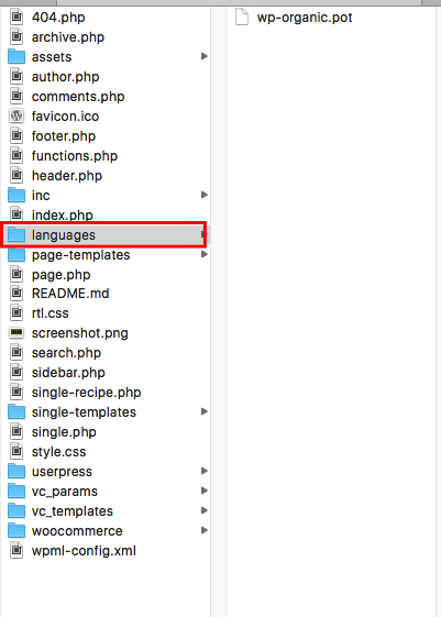Please note: Default language file extension is .pot (such as organic.pot... ) but you have to use .po in order to make your translation work. Also Poedit application will create .mo and it needs to be included in languages folder as well.