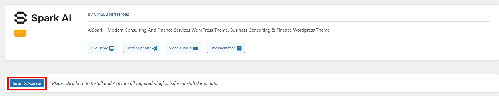 7. After Installing CMS Portal Plugin and Child Theme, please click Install & Active button to Install and Activate all required plugins before installing Demo data.
