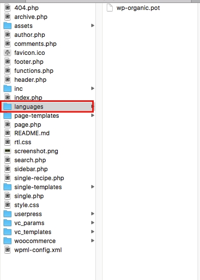 Please note: Default language file extension is .pot (such as organic.pot... ) but you have to use .po in order to make your translation work. Also Poedit application will create .mo and it needs to be included in languages folder as well.